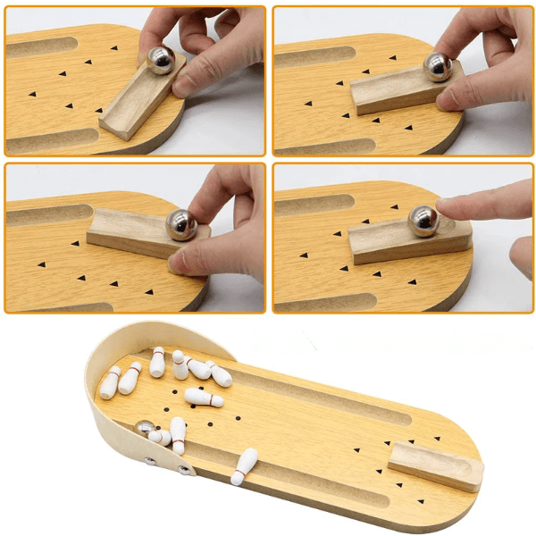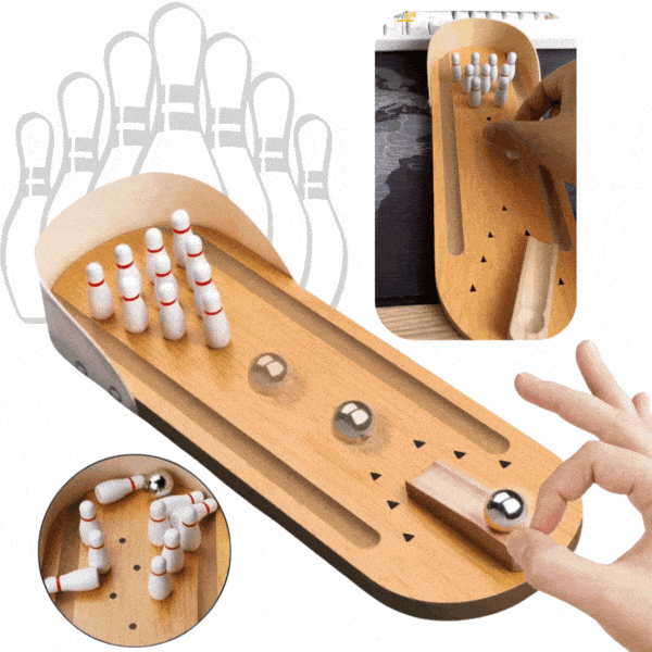 Prinesite veselje igre bowlinga kar na mizo! Kompaktna velikost omogoča, da otroci igrajo kjerkoli – brez hrupa, brez tveganja za poškodbe.